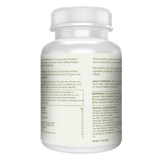 Bai zhu (Atractylodes macrocephala) 45mg, Tu si zi (Cuscuta chinensis) 45mg, Mo han lian (Eclipta prostrata) 45mg, Nu zhen zi (Ligustrum lucidum) 45mg, Sang shen (Morus alba) 45mg, Sheng di huang (Rehmannia glutinosa) 45mg, Zhi he shou wu (Reynoutria multiflora) 45mg, Dan shen (Salvia miltiorrhiza) 70mg, Tu fu ling (Smilax glabra) 45mg, Pu gong ying (Taraxacum mongolicum) 70mg, Zinc (Zinc) 5mg